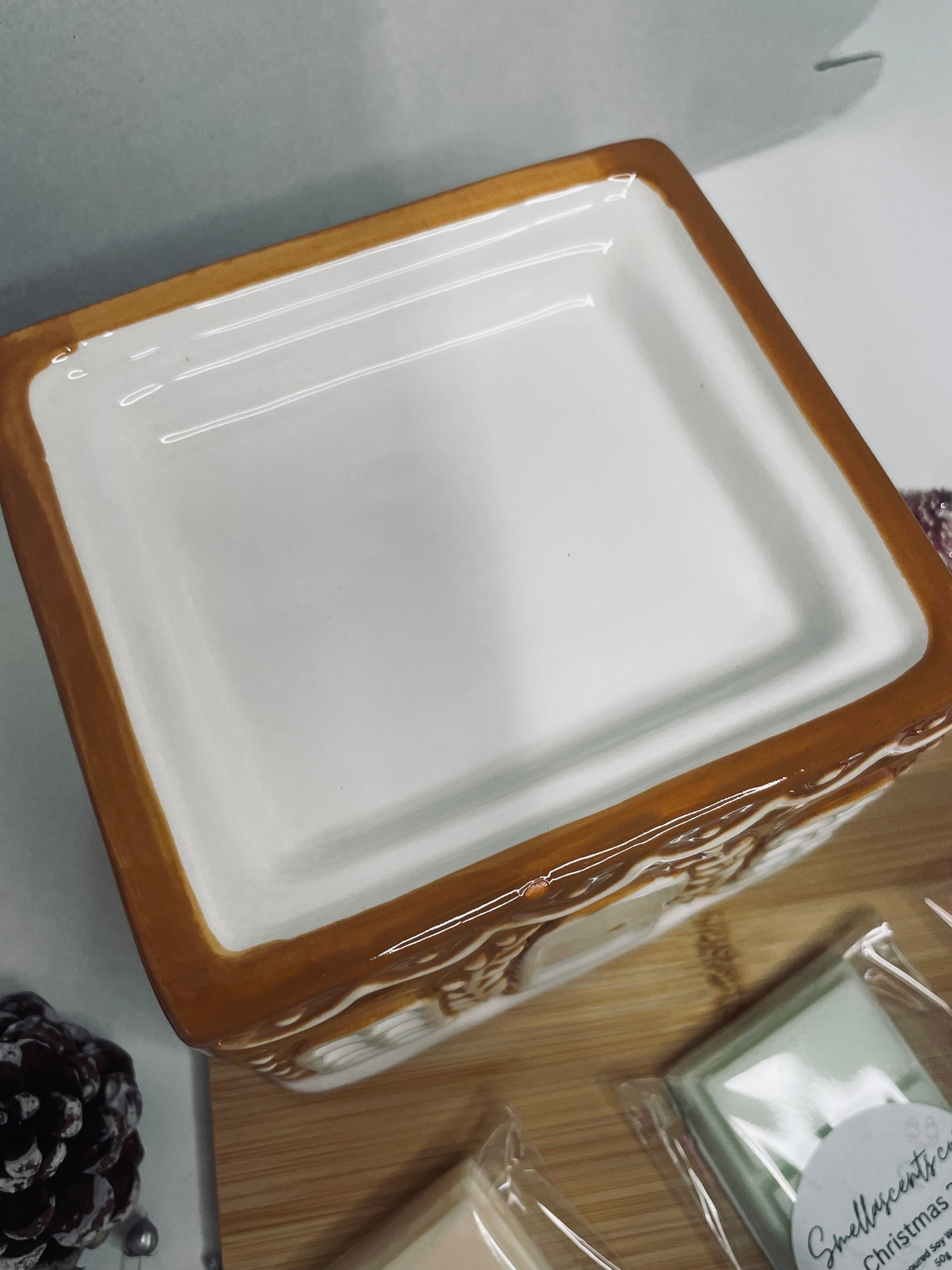 Our gingerbread house burner is made from high-quality ceramic, with a removeable lid and window shaped holes for safe air flow. Due to the nature of the manufacturing process, slight imperfections may occur.